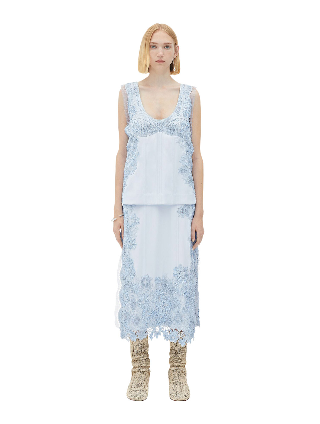 Those wanting to emulate this royal look should first pay a visit to Bottega Veneta: its pale blue lace dress echoes the young queen’s palette perfectly; pair it with Roger Vivier’s patent leather mules – we particularly love the Regency-style buckle. Carry the floral motif through to your accessories with Bulgari’s white-gold bracelet, an elegant nod to Charlotte’s love of silver tones.