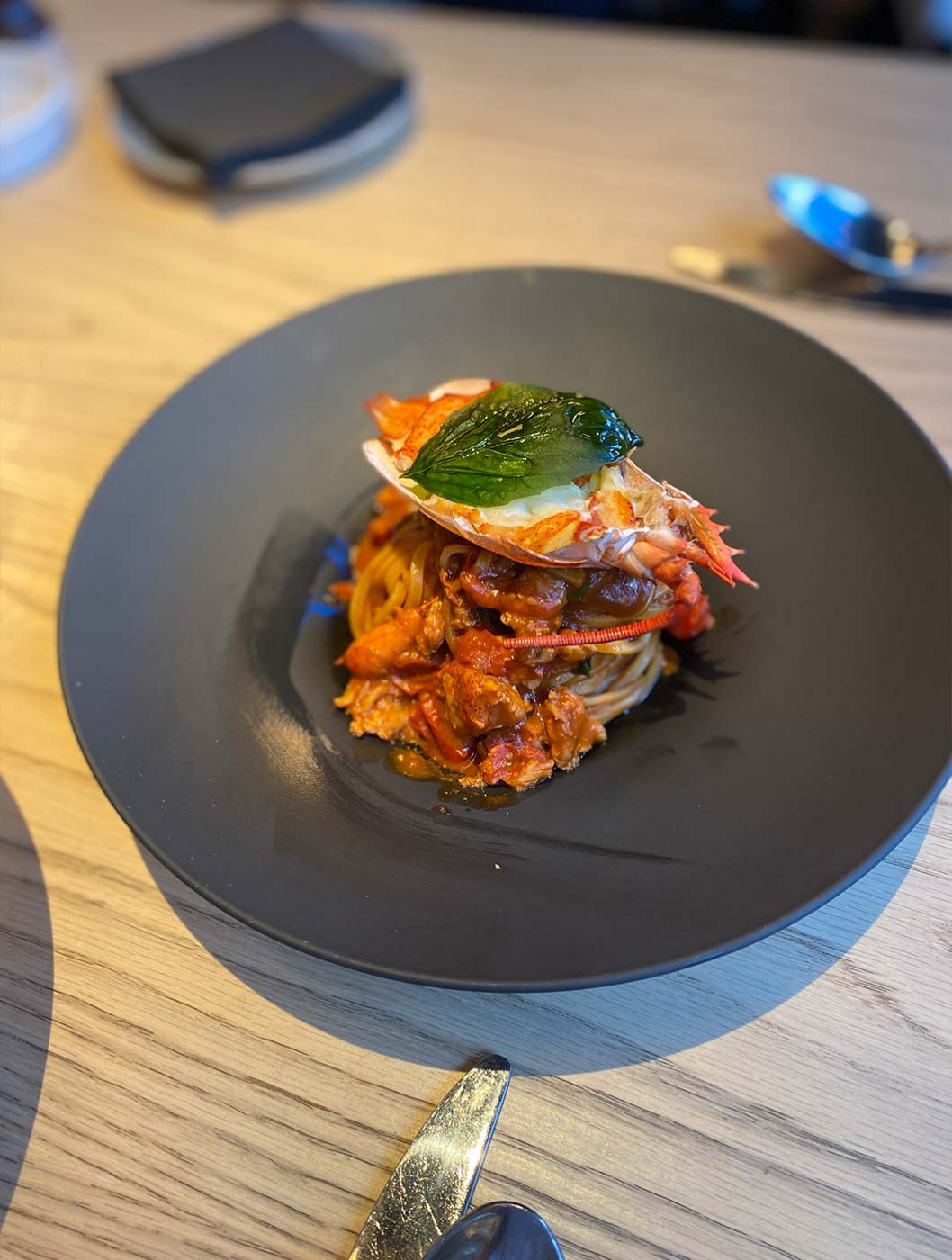 Pizza is also a major player on the menu. The restaurant has a wood-fired oven that produces the kind of pizzas with crispy bases and speckled crusts that would be admired by the most adroit pizza chefs of Naples. And it wouldn’t be an Italian menu without pasta options – we loved the spaghetti alla carbonara di gamberi, which was topped with raw Sicilian red prawns and packed a flavour punch with tuna bottarga, egg yolk, lemon and a leaf of mertensia maritima, commonly known as oyster leaf or oyster plant for its uncanny taste of oysters.