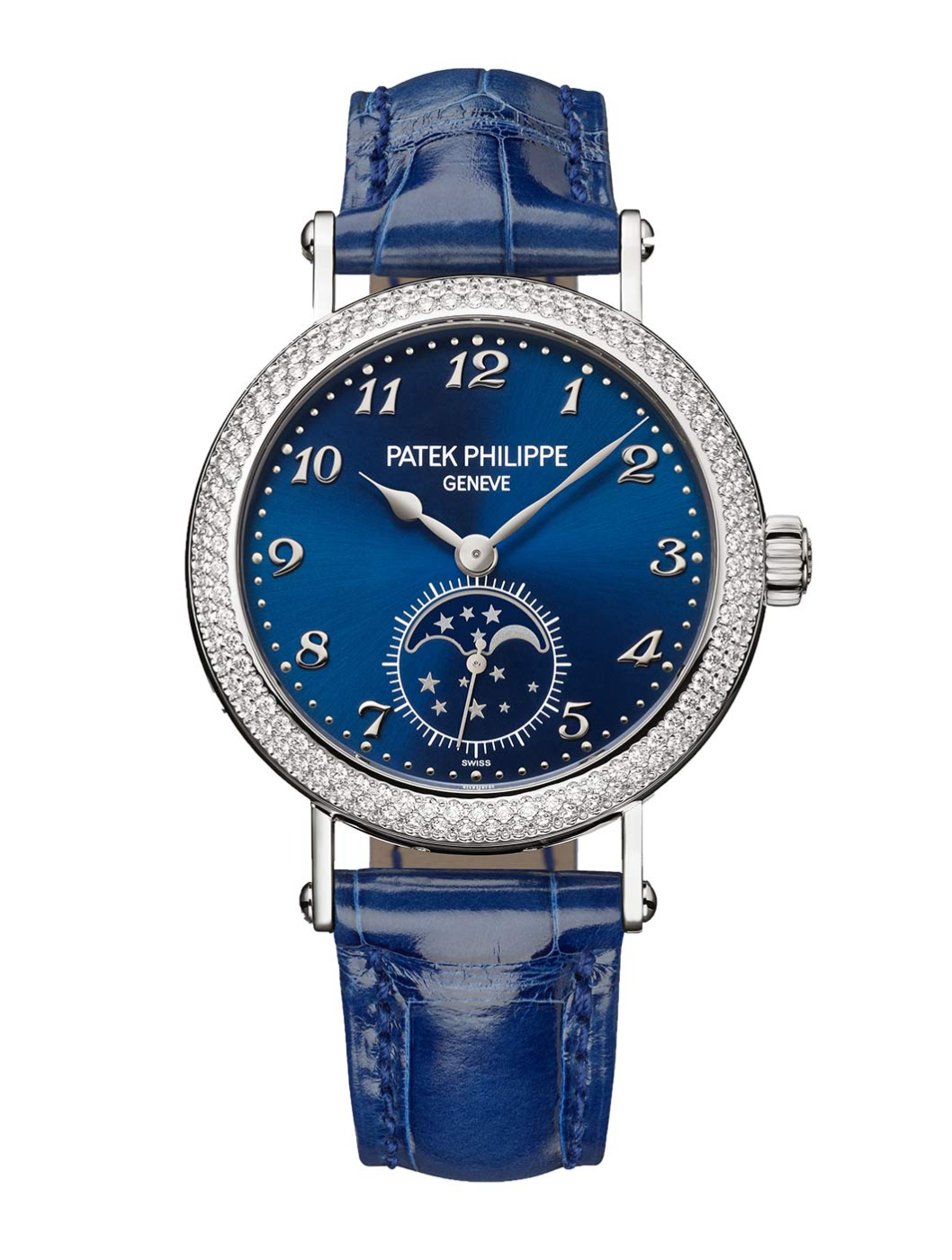 It’s a design both beautiful inside and out: the midnight-blue dial’s sunburst finish and double rows of 132 brilliant-cut diamonds on the bezel offer a subtle play of light, as Breguet numerals add a touch of classicism. Inside beats Calibre 215 PS LU, the house’s smallest complicated movement that powers the moon phase and small seconds display, all encased in an elegant 33mm-sized case. This is one that the next generation of watch collectors will pine over.