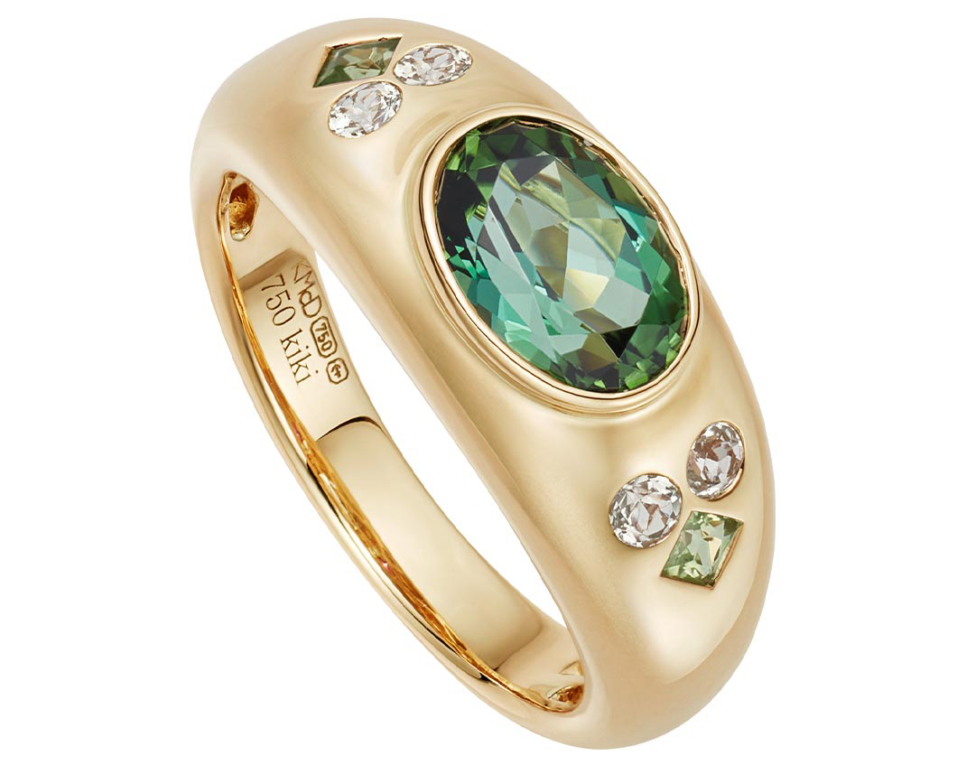 Kiki McDonough ring with green tourmaline, lemon quartz and peridot, £2,300