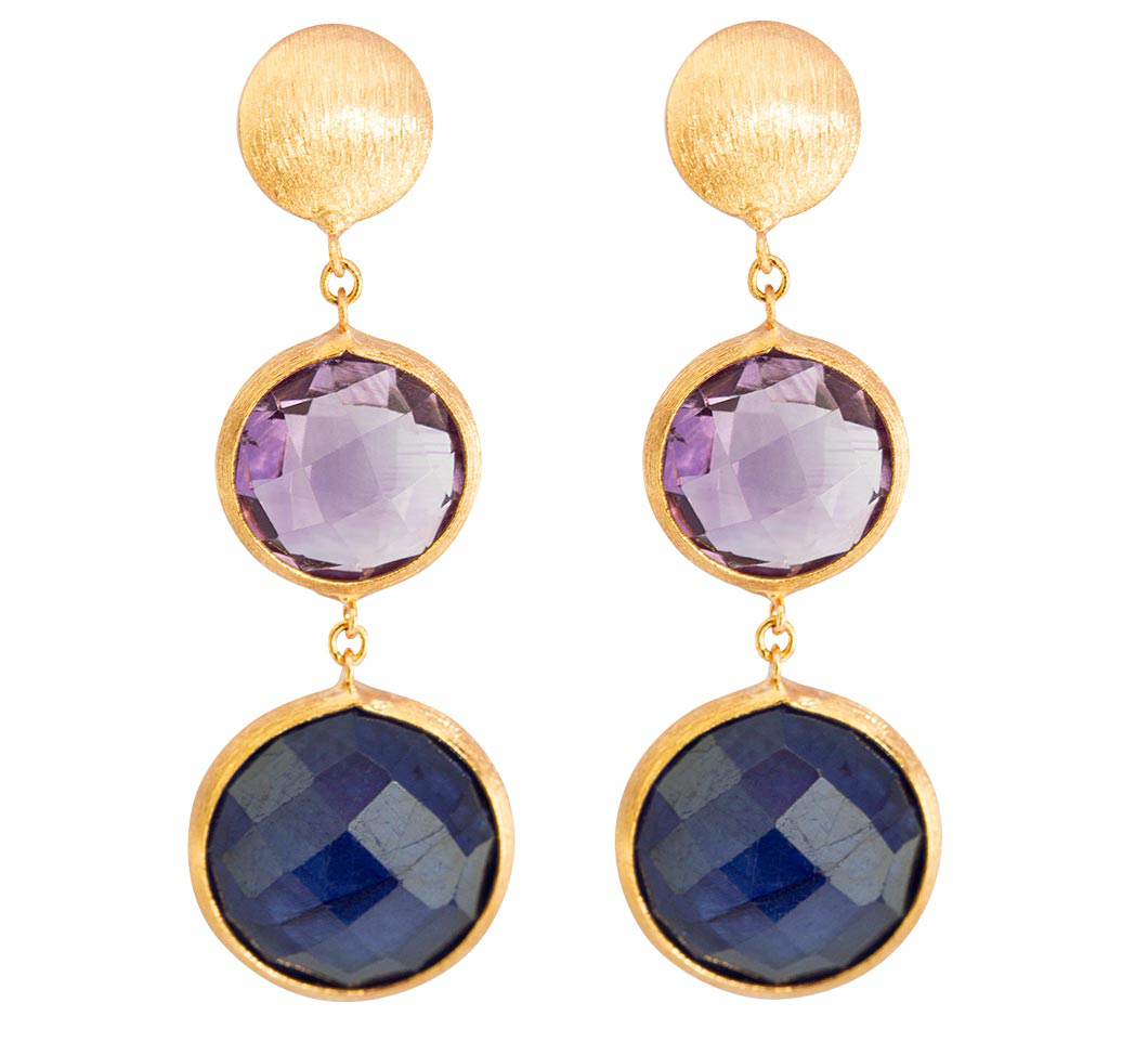 Tateossian satin rose gold Kensington double drop earrings with sapphire and amethyst, £999